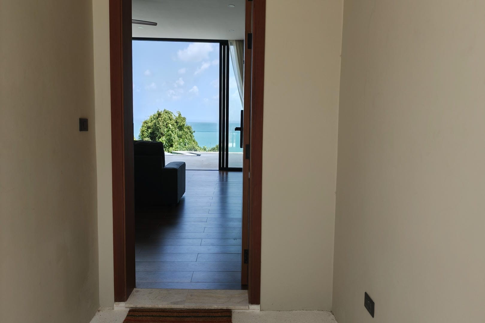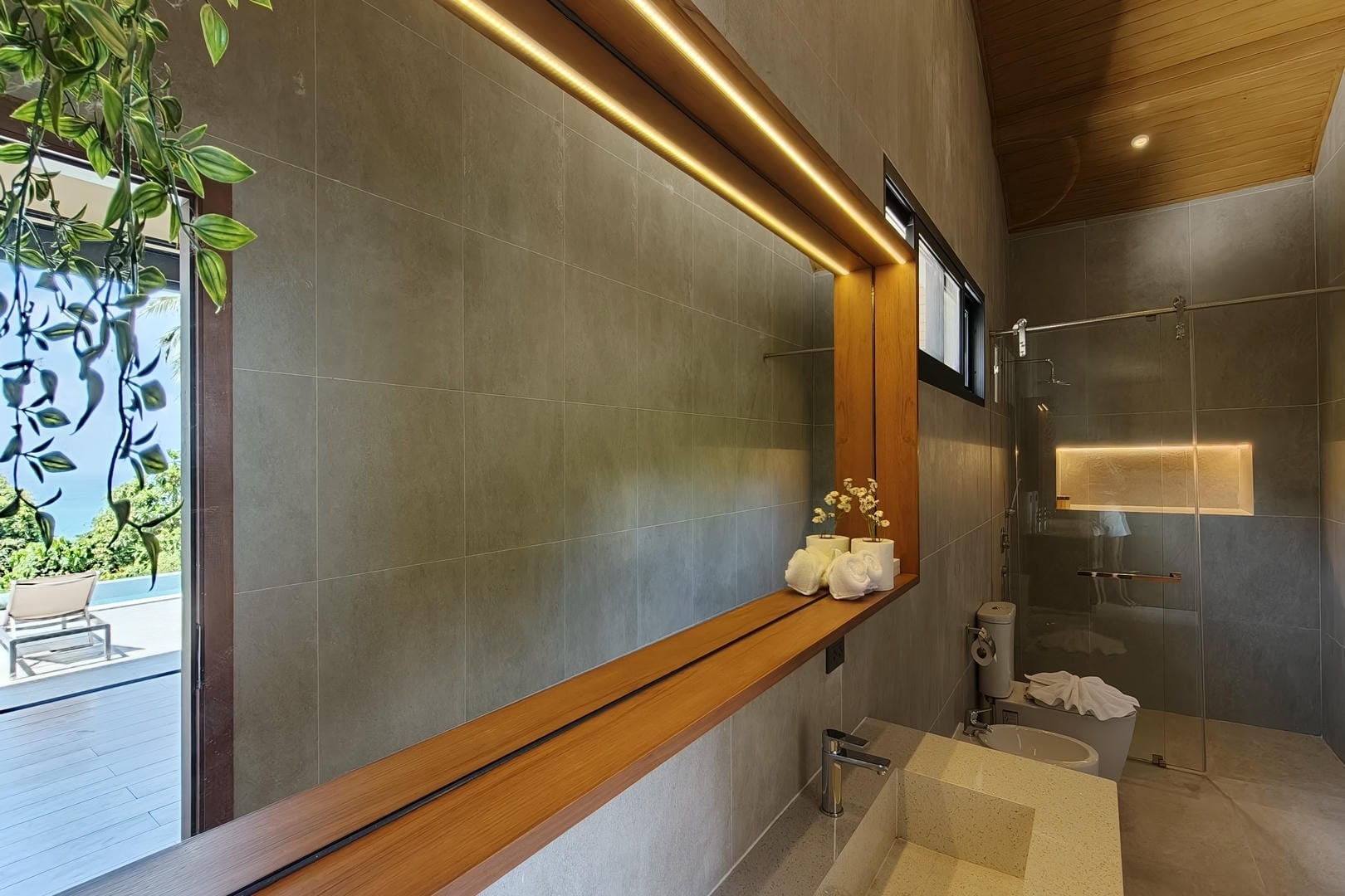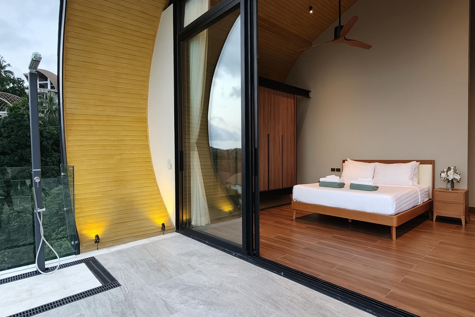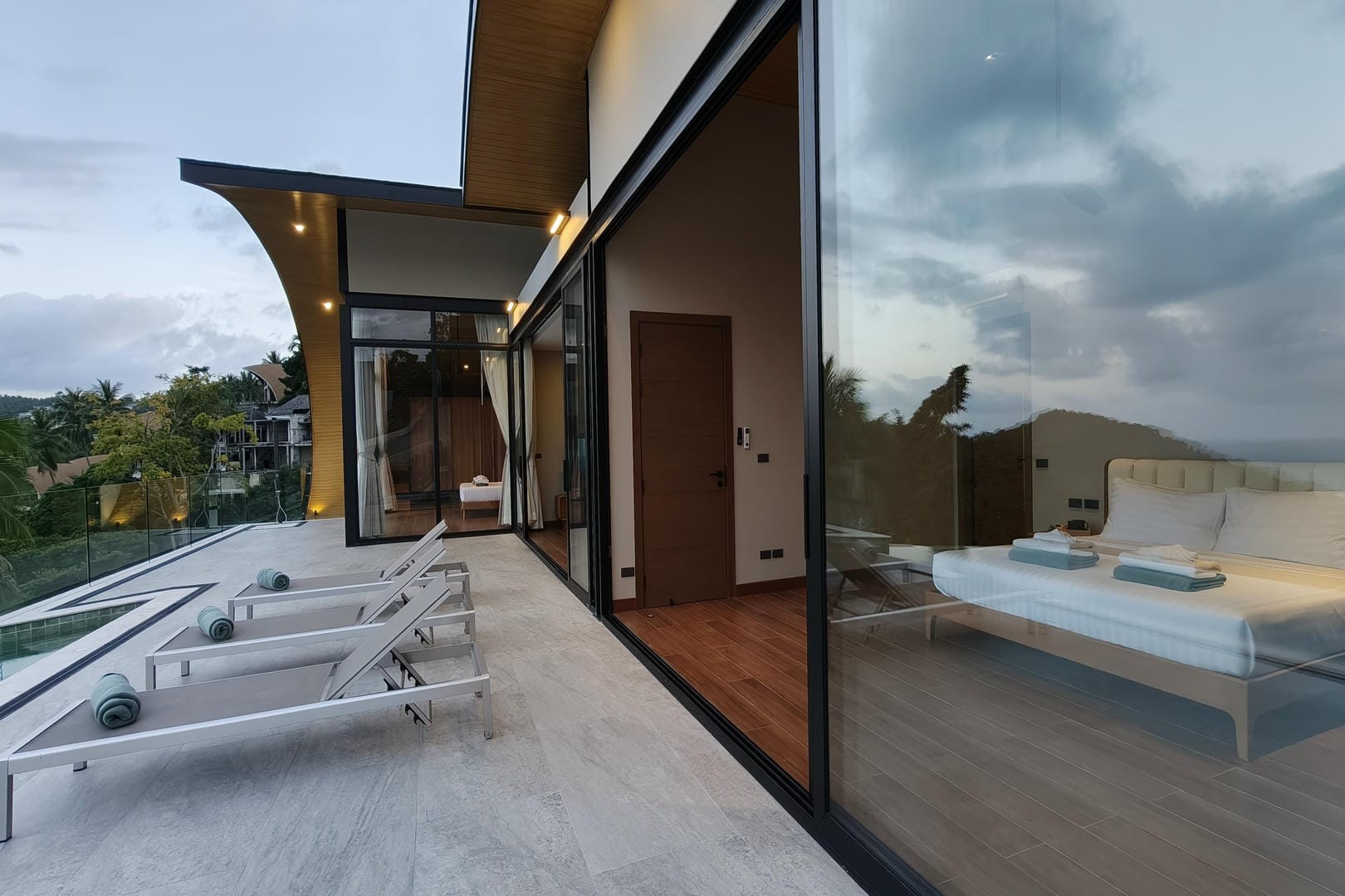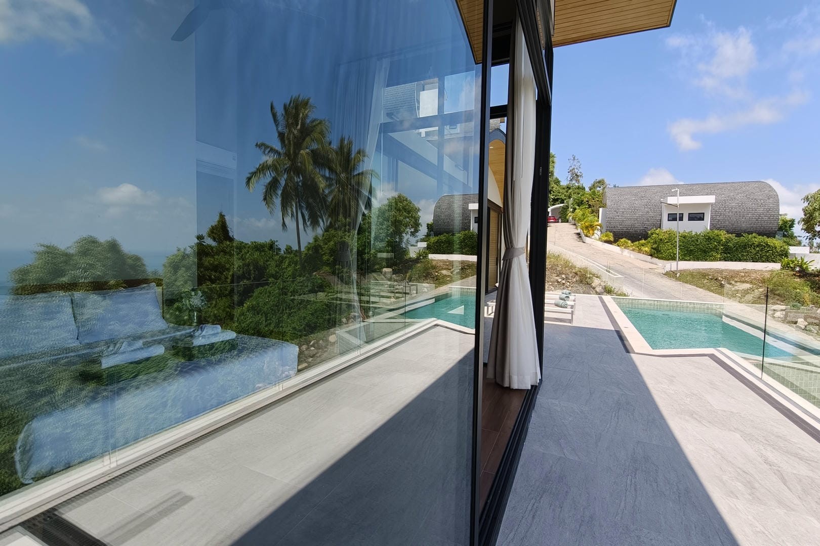 Villa Tenament is a newly built three-bedroom modern villa set on the peaceful hillside of Chaweng Noi, Koh Samui. Showcasing a distinctive curved roof inspired by natural forms, the villa blends contemporary architecture with its tropical surroundings. From the moment you arrive, sweeping ocean views create an immediate sense of calm and exclusivity.