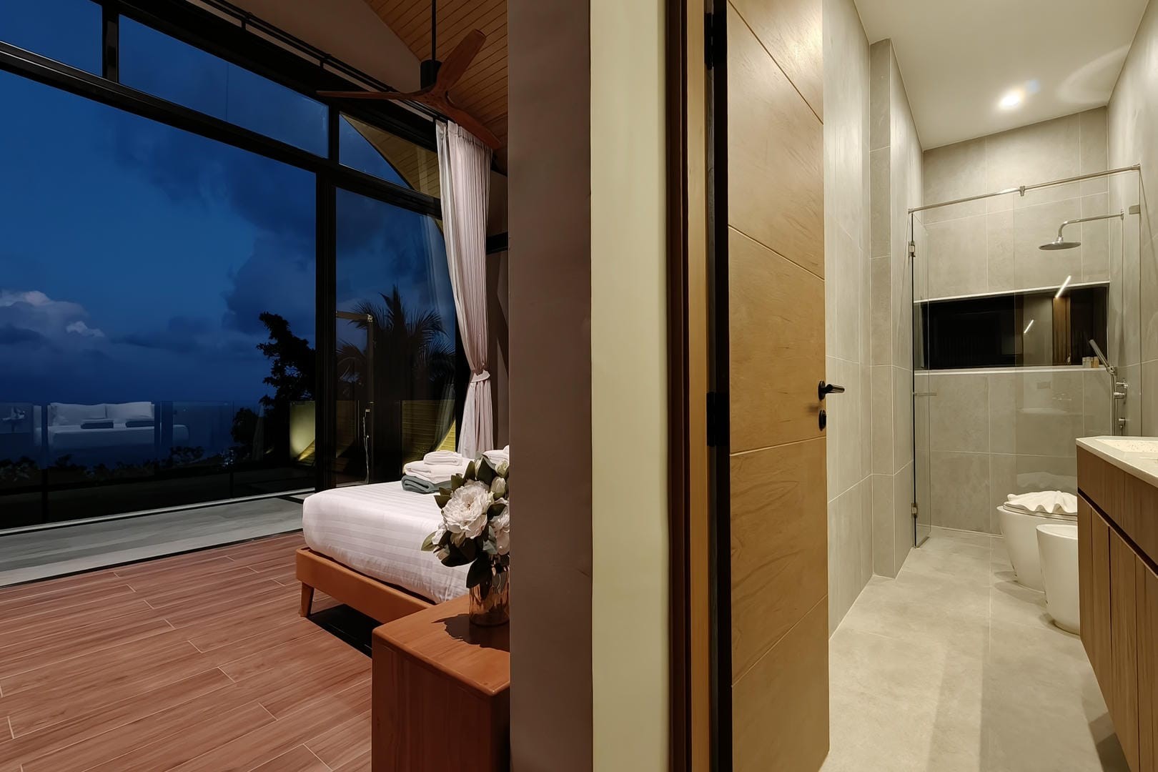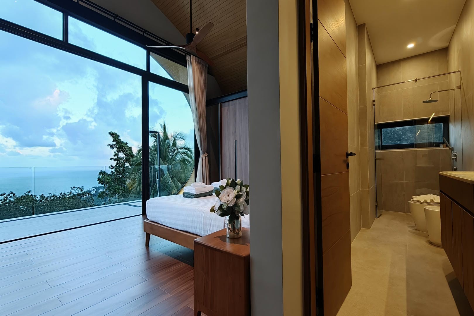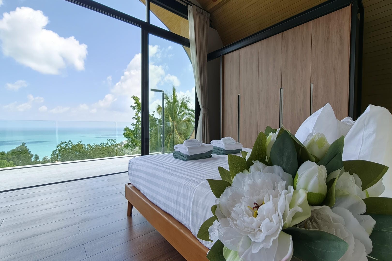 Elevated above the coastline, the villa offers a serene and private atmosphere while remaining conveniently close to beaches, restaurants, and the vibrant attractions of central Koh Samui.
